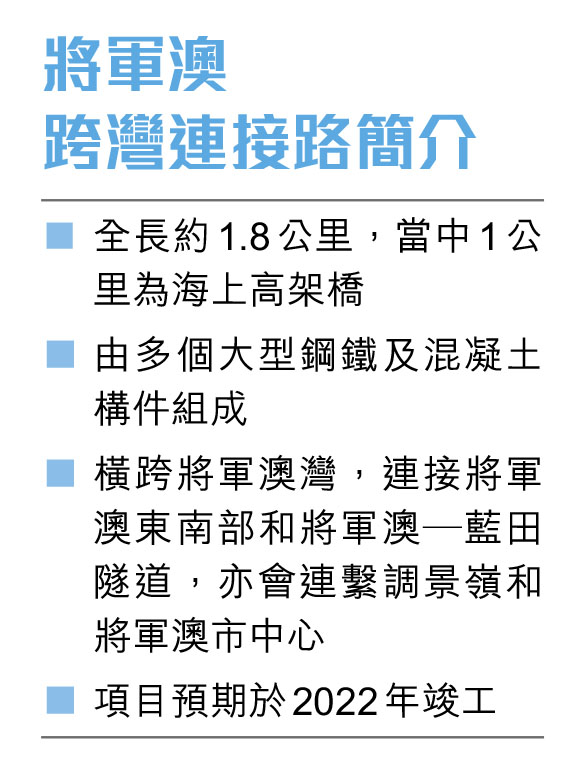 預期於2022年竣工的將軍澳大橋,位於香港新界東南側的將軍澳海灣,是連接將軍澳和藍田隧道的重要跨海通道。該橋主體為一條橫跨將軍澳海灣的海上高架橋,而雙拱鋼橋正是海上高架橋的主橋部分。這一外飄式雙拱鋼橋重約1萬噸,跨徑200米,建成後是香港跨度最大的鋼拱橋,將成為香港繼青馬大橋、昂船洲大橋之後又一地標性跨海大橋。