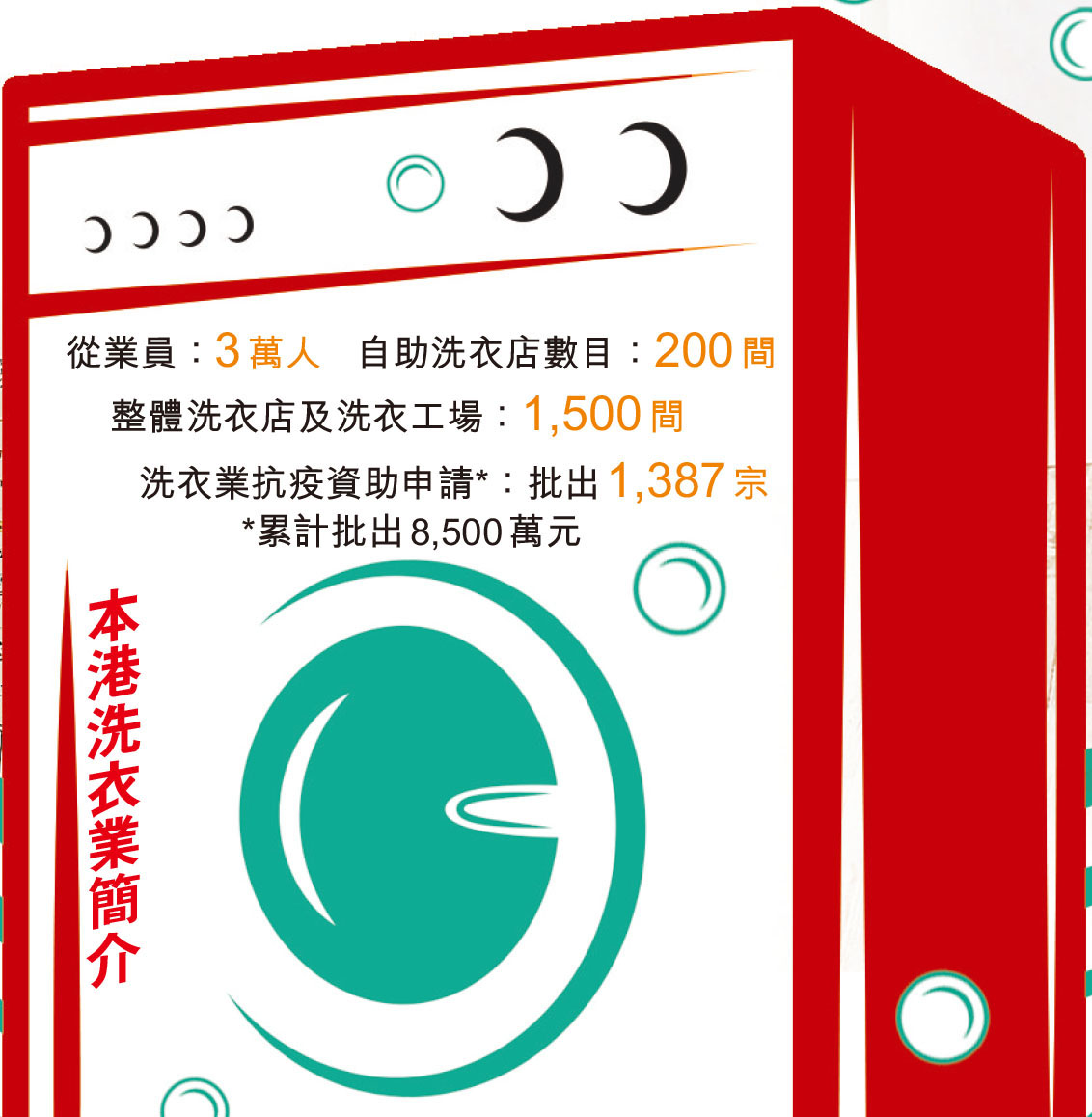 至於近年崛起的自助洗衣店,周漢強指,行外人沒有留意到,市民無得出外旅遊對自助洗衣店原來亦有相當影響。「通常市民準備出外旅行和旅行返港時,都會攞衣物到洗衣店洗。但旅遊受到防疫措施限制,這方面收入就沒有了。」