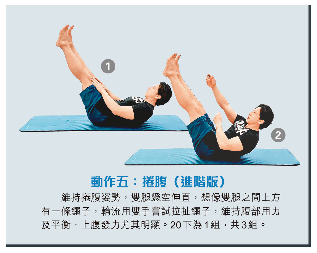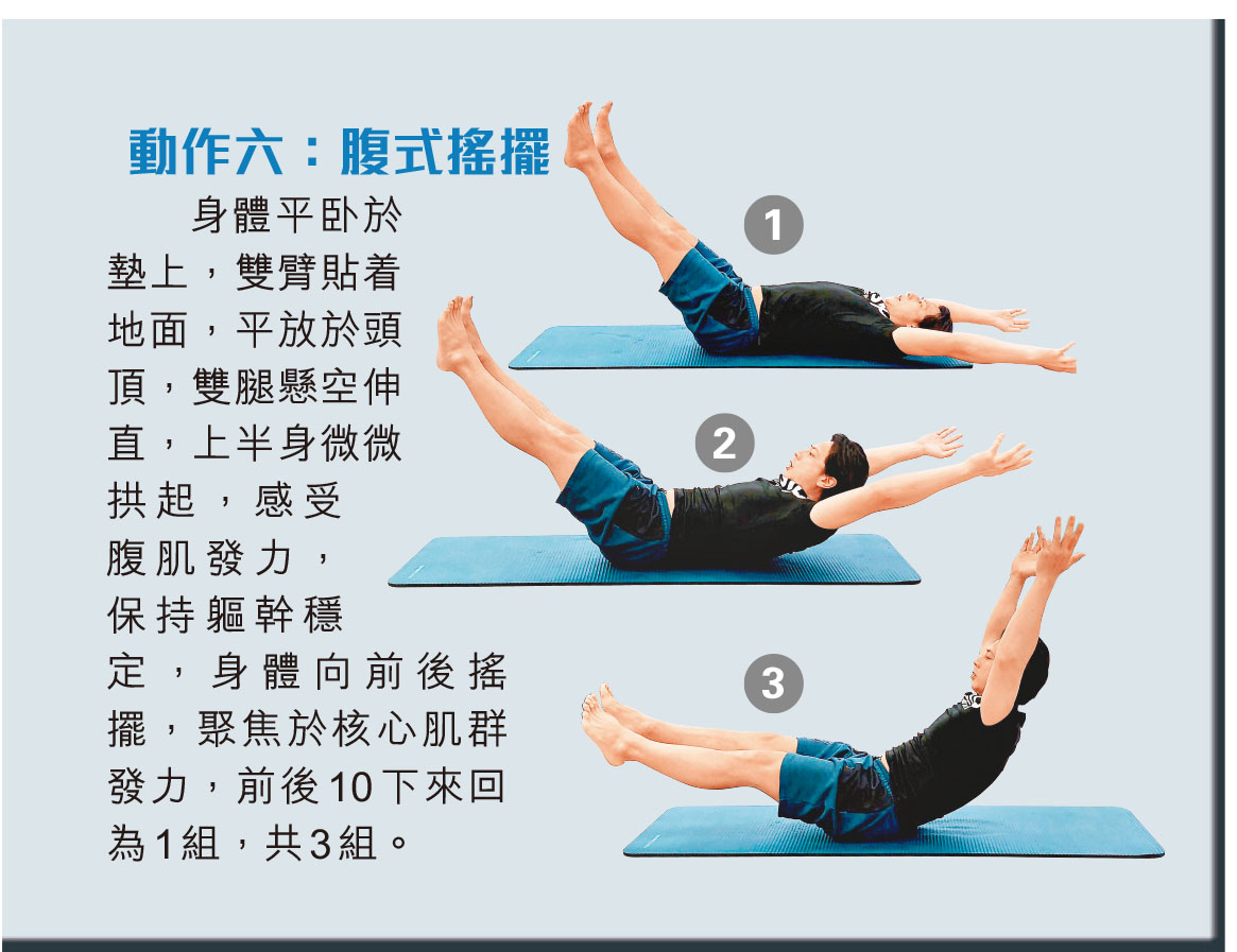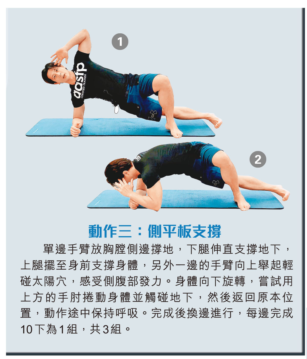 現今都市人追求健康,並不時在餘暇時間鍛煉身體,本報亦收到不少讀者反映,對相關資訊感興趣,故特別開設「健體版」,今期請來AASFP精英教練及導師林敬良(Allen)作專業指導。說起健美身形,不少人都對韓國男星線條分明的馬甲線十分羨慕,Allen教練就為大家示範六個鍛煉腹部的動作,只要持之以恒,必然能看到像冰格般明顯的六塊腹肌。