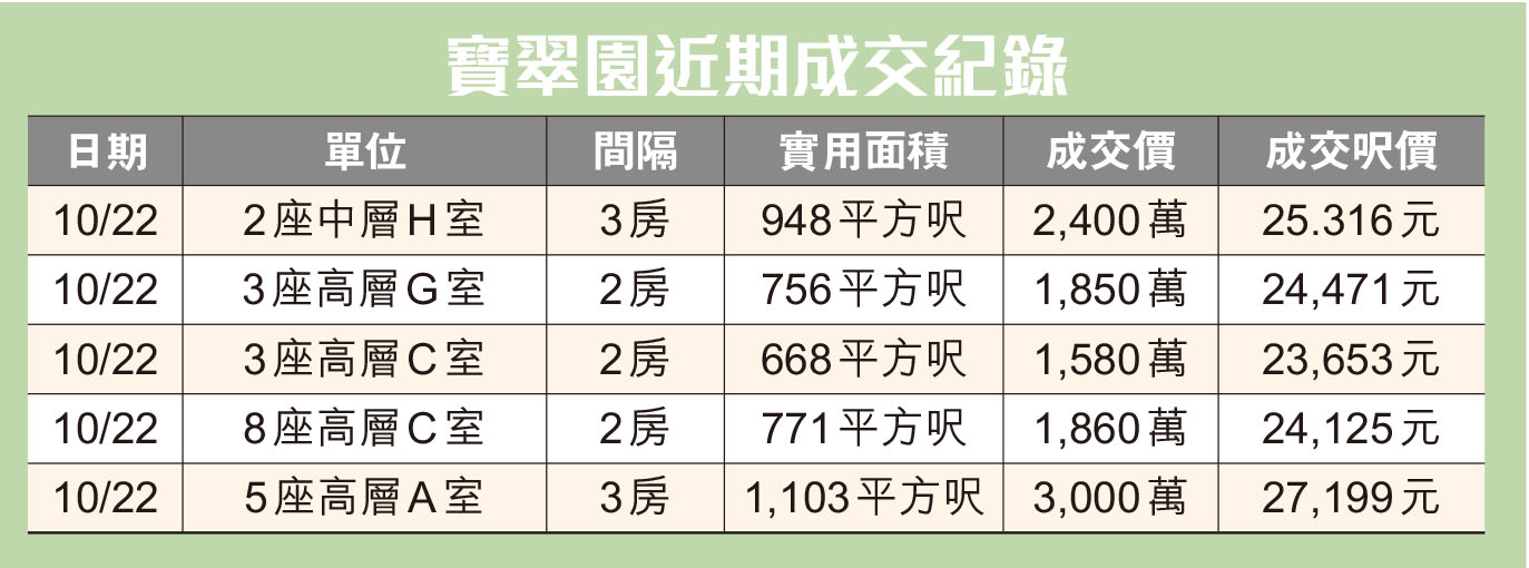 美聯物業堅尼地城分行市務經理(銷售)梅菁殷表示,寶翠園單位入場呎價約22,000至25,000元,高質素靚海景單位呎價則為30,000至35,000元,現時放盤約100宗。她並指,今個月有意搵筍盤的外區客明顯增加,而買家主要是樓換樓upgrade的家庭客為主。