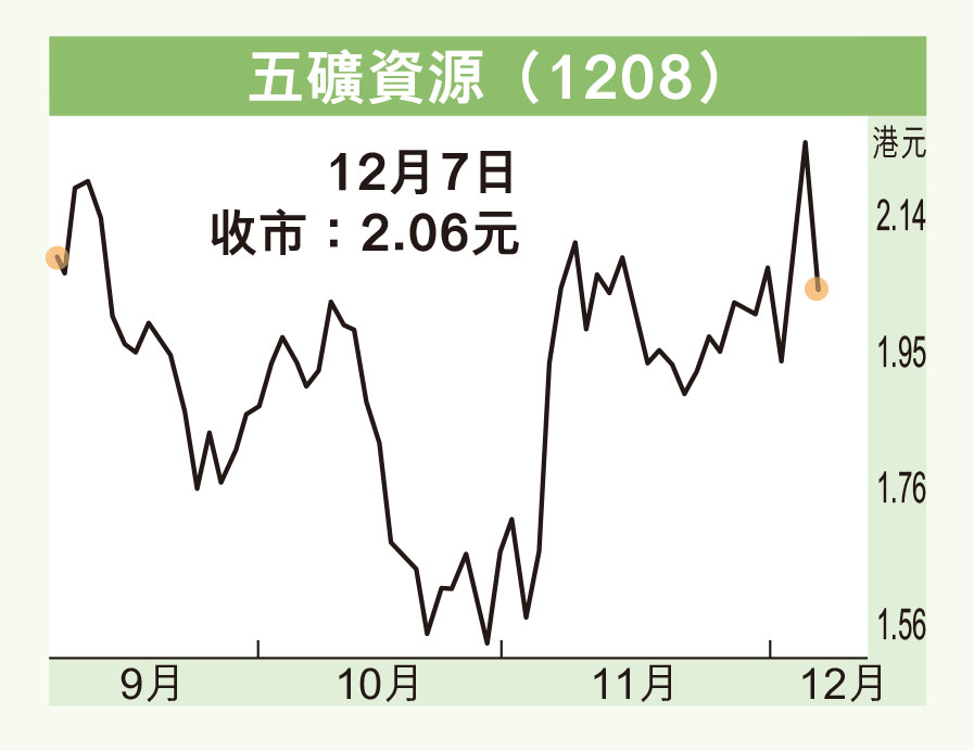 隨着秘魯銅項目生產恢復及內地疫情防控放鬆帶動經濟復常,新能源基建擴大,銅需求回升,有利業績改善。五礦資源股價昨隨大市回調,收報2.06港元(下同),跌0.21元或9.25%,成交額近7,700萬元。股價回落至10天及20天線水平,而50天線在1.9元水平,2元或可作為近期急升後回調吸納區,反彈目標2.6元,跌穿1.9元則止蝕。