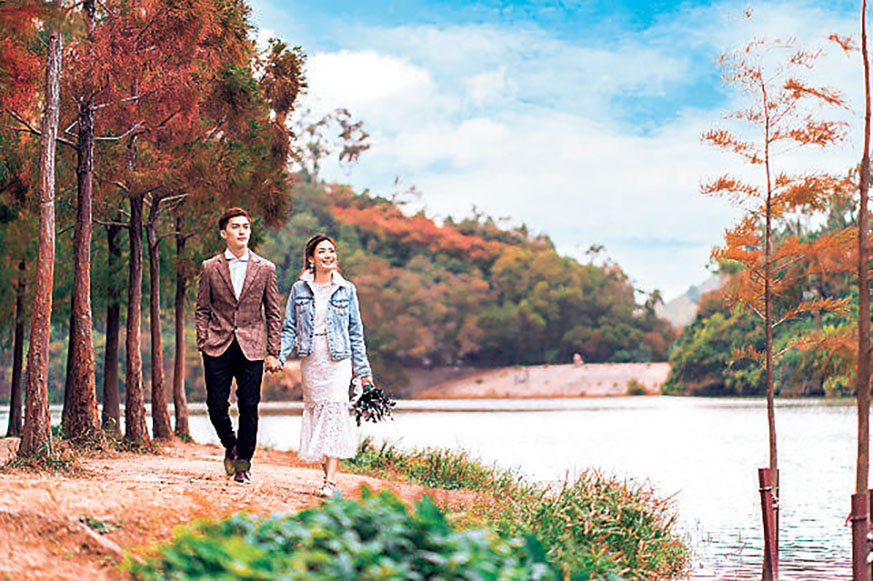 秋天一到,不少新人便會捉緊時間到流水響拍紅葉婚照。流水響水塘種植了一排落羽松,每年秋天變成漫天紅葉,被港人譽為「港版輕井澤」,絕對是季節限定的婚照。