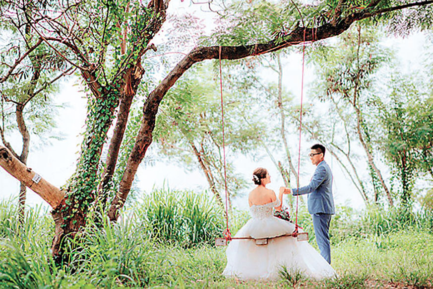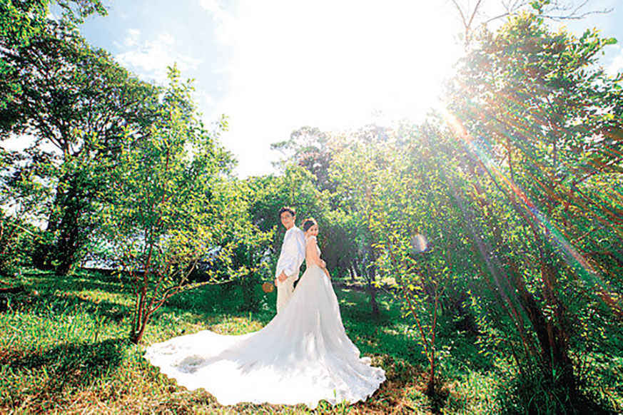 獅子會植物種類多,不同種類的樹木有不一樣的形態,可以令婚照有不同的效果,而且茂盛的樹木可以拍出現在流行的森系感覺。