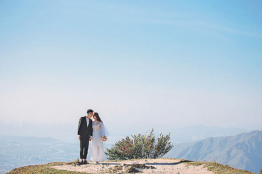 大帽山貴為香港最高山峰,可以將山下的香港景色一拍無遺,新人可以在廣闊的天空下,倚靠連綿山脈拍出強大氣勢的婚照。