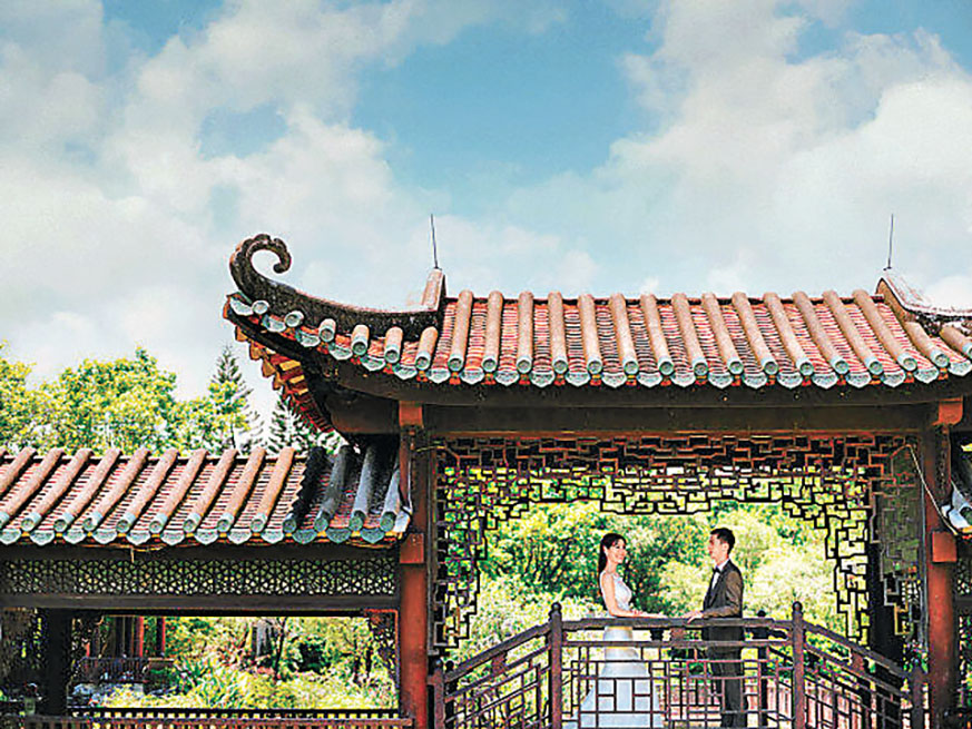 喜歡東方文化的新人當然不能錯過荔枝角公園,公園內的嶺南之風就是多套古裝電視劇集取景之處。此處建有亭台樓閣、小橋水榭,拍攝的婚照格外文青優雅。