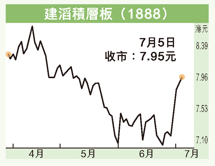 該行月前發表報告,調整建滔板2023至2024年淨利潤預測至23.3億至28億元,現時新增預測2025年淨利潤達34.8億元,予其目標價9元。
