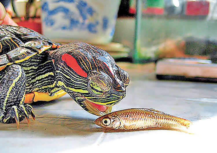 值得留意是,巴西龜的飲食應含高比例的鈣、磷和維生素D3,包括小塊水果、蔬菜或淡水蝦,以保持骨骼和外殼的健康。同時,一定要避免讓龜吃任何乳製品、加工食品或有毒的植物,避免過胖。