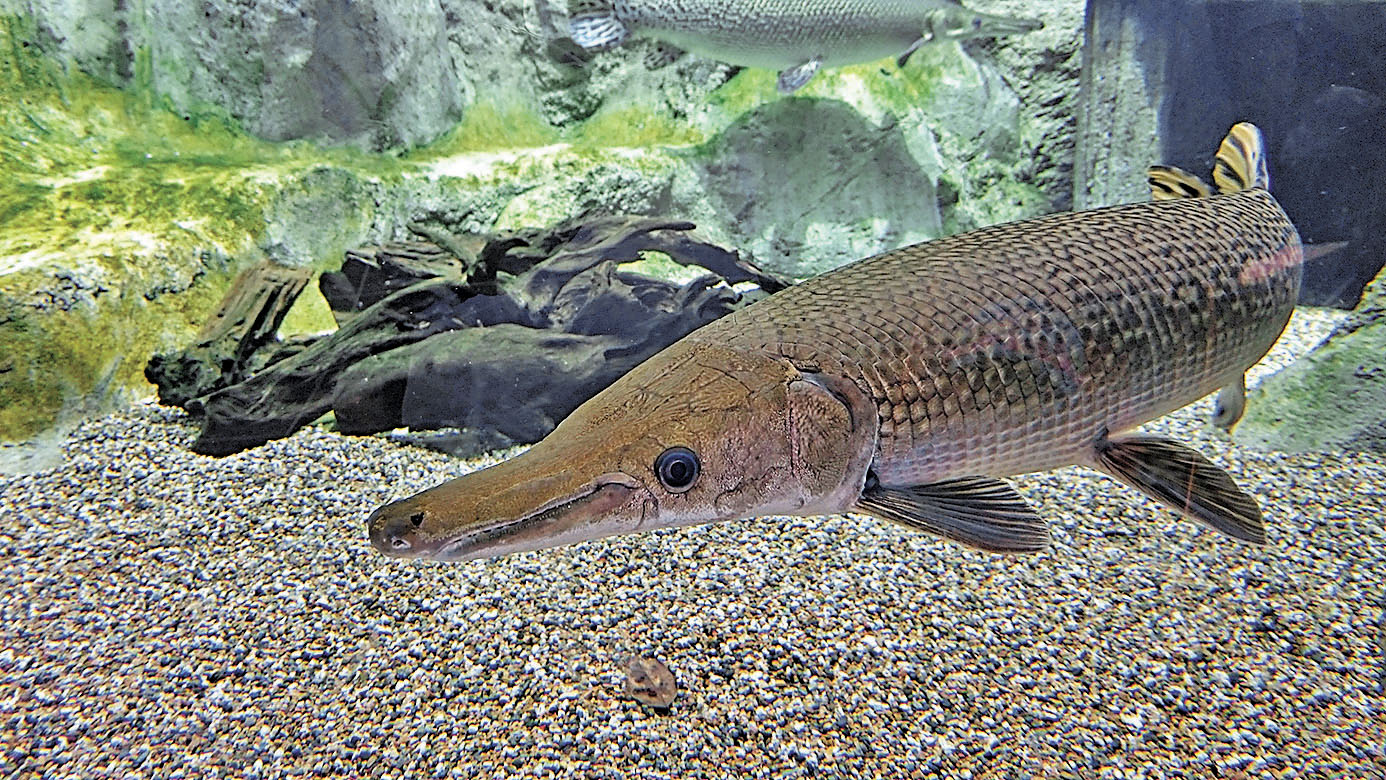 體形呈青灰色,帶有暗黑色斑紋,嘴與其他雀鱔種類相比要短一些,比較寬大,體長一般為1.2至1.8米,體重45至72公斤。