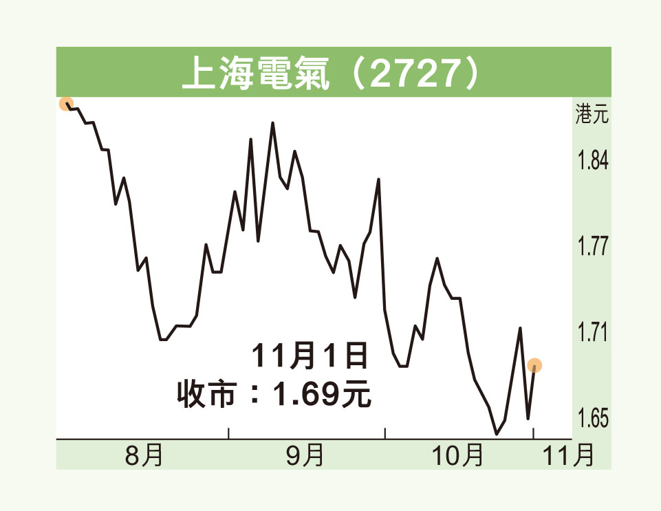 上海電氣昨以近全日高位收市,報1.69元(港元,下同),升4仙或2.42%,成交267.55萬元。以全年度核心盈利12億元人民幣計,現價預測市盈率約19倍,市賬率0.43倍,估值有條件回升。