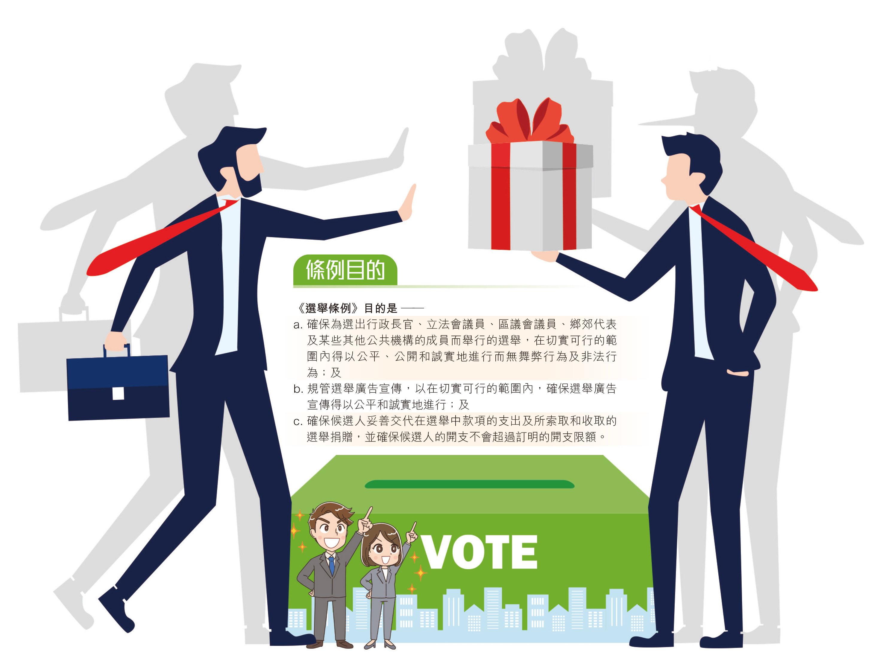 由廉政公署(下稱廉署)負責執行的《選舉(舞弊及非法行為)條例》(《選舉條例》)旨在確保選舉廉潔公正,並防止舞弊及非法行為的出現,包括煽惑他人選舉不投票等犯法行為。周日(10日)將是區議會選舉日,本報特此整理《選舉條例》面面觀,讓大家清楚了解條例如何監管與選舉有關的舞弊及非法行為,以免大家以身試法。
