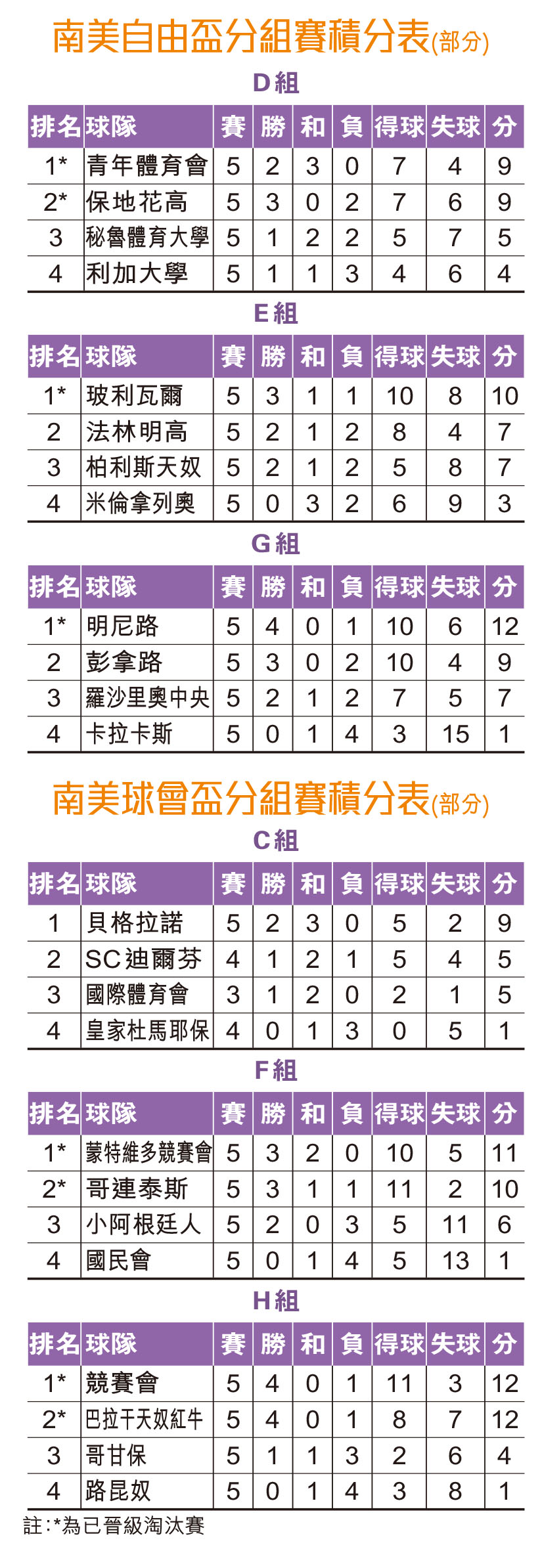 明尼路在G組開個靚頭,頭4輪全勝共轟入10粒,但上輪作客烏拉圭吞彭拿路兩蛋,不但被中止連續12場正式賽事不敗紀錄,而且尚未確保首名資格;之後上周五於巴甲作客利斯菲體育會弱陣出擊亦輸0:1,巴西老牌強鋒侯克該役以私人理由請假缺陣,已銷假歸隊今仗可以復出,遇弱有決心中止連敗頹勢;卡拉卡斯曾奪12屆委內瑞拉超級聯賽冠軍,但這支昔日班霸今季全線跌Watt,本土聯賽13戰只贏兩場位列尾四。在南美自由盃更成為魚腩,5戰僅得1分已篤定小組包尾,更是32支分組賽球隊失波最多一隊(15球),今屆兩場分組賽作客分別輸0:5及1:4,首循環主場對明尼路亦大敗1:4,今仗會再一次大手交易。