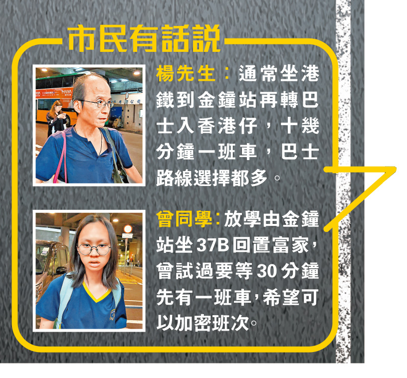 社區幹事甄智健指出,有居民反映在上班及上學高峰時段經常無法上車,許多受訪者均指由於巴士班次不足,經常需要等下一班車,等待時間長達15至20分鐘,導致經常上班或上學遲到,不僅影響日常生活,也增加通勤壓力。