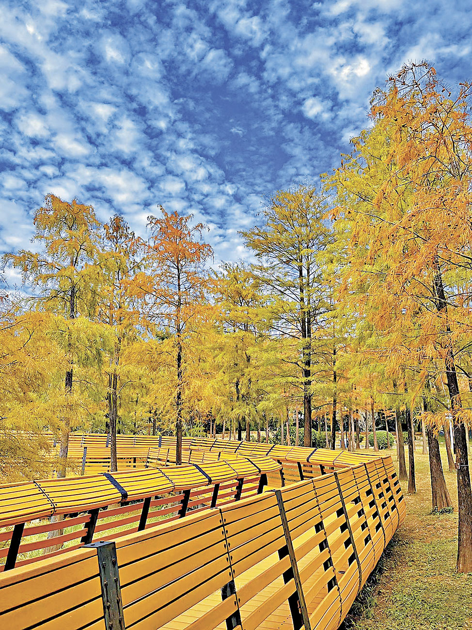 蓮花山公園佔地185多公頃,同時也是深圳八景之一。和深圳市其他公園一樣,遊客可以免費參觀蓮花山公園。其山腳下有風箏廣場、關山月美術館等景點。公園南區建有以棕櫚科植為主的8萬平方米椰風林大草地,而落羽松主要集中在漾日湖,只要從公園東門進入,即可看見一大片落羽松林以及湖景,大家可在原木色步道上漫步,以不同角度欣賞眼前充滿秋意的美景。