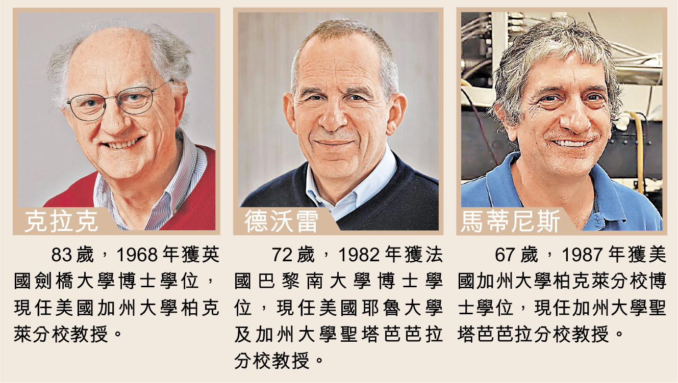 物理學世界中深奧的量子力學,是計算機、加密與傳感等量子技術的基礎,能夠展示量子力學效應系統的最大尺度,一直是物理學界的關注焦點。瑞典皇家科學院周二(10月7日)宣布,今屆諾貝爾物理學獎授予克拉克、德沃雷與馬蒂尼斯三名科學家,表彰他們在一個足以用手握住的系統中,發現了宏觀量子力學隧穿效應和能量量子化,證實了量子力學效應能在宏觀系統中呈現,為眾多改變人類世界的量子技術打開大門。